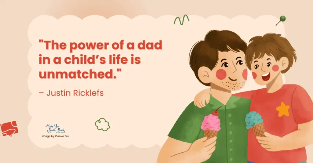 11) “The power of a dad in a child’s life is unmatched.” – Justin Ricklefs