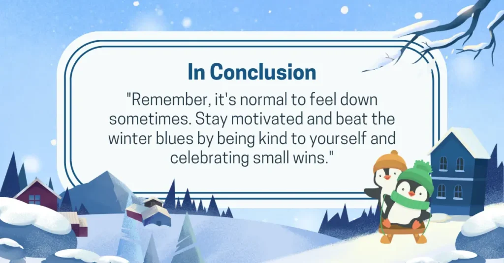 Remember, it’s normal to feel down sometimes. Stay motivated and beat the winter blues by being kind to yourself and celebrate small wins.