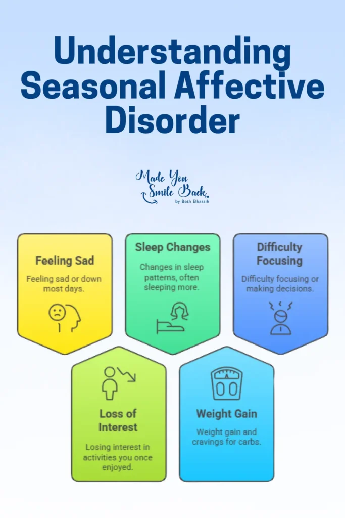 Seasonal Affective Disorder (SAD) is a type of depression that follows a seasonal pattern. It often starts in fall and lasts through winter. SAD can affect your mood, energy, and daily life.