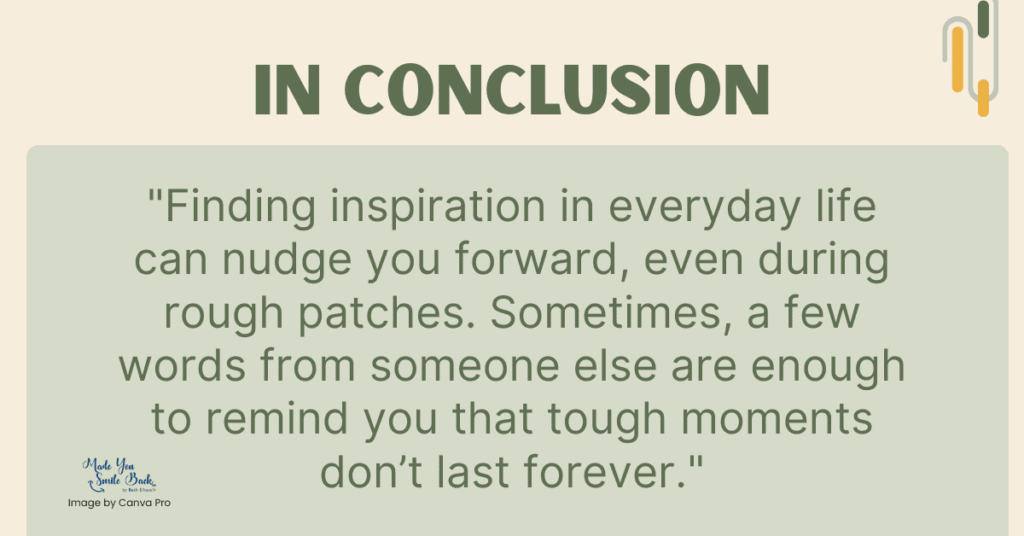Finding inspiration in everyday life can nudge you forward, even during rough patches. Sometimes, a few words from someone else are enough to remind you that tough moments don’t last forever.
