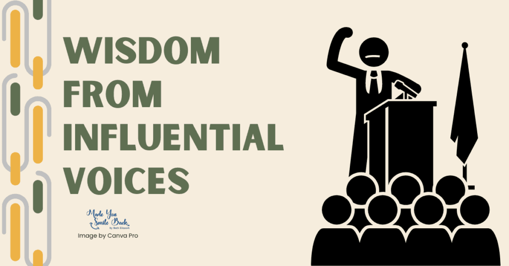 Mark Twain often used humor in his wisdom, like when he said, “The secret of getting ahead is getting started.” Ralph Waldo Emerson suggested, “What you do speaks so loudly that I cannot hear what you say,” pointing out the power of action.
