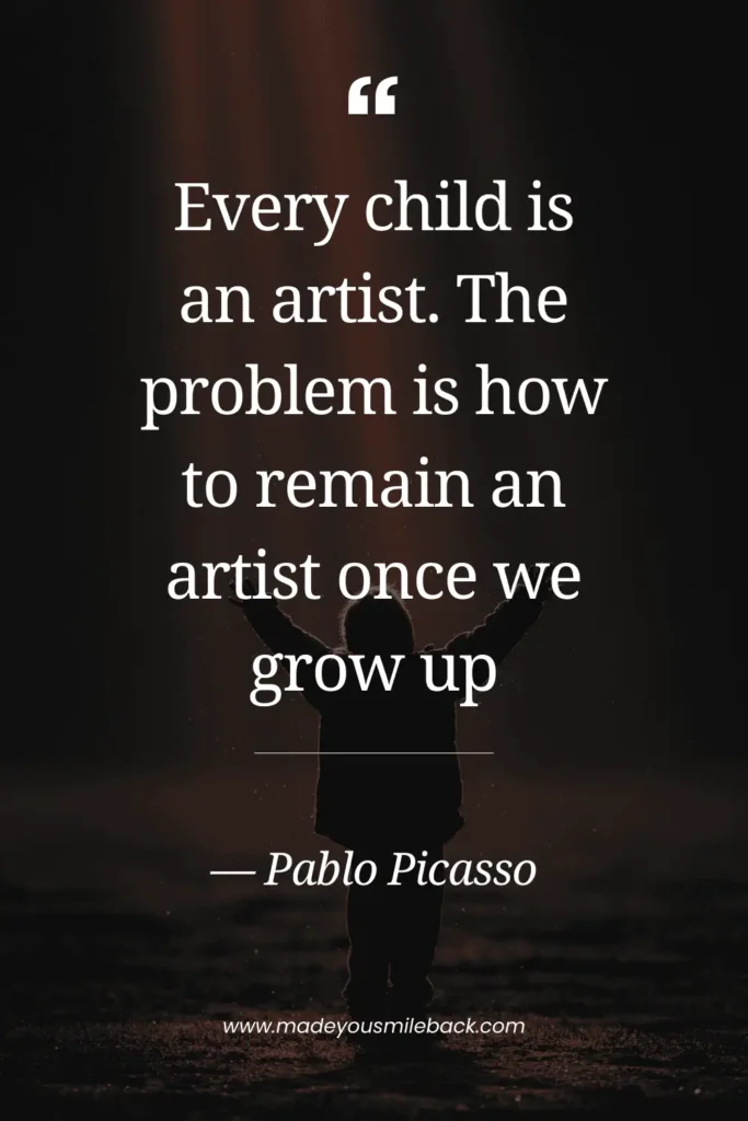 Picasso nailed it with this observation about how we lose our creative fearlessness as we age. Kids don’t worry about making “good” art—they just create for the pure joy of it. Recapturing that childlike wonder is one of the greatest gifts we can give ourselves.