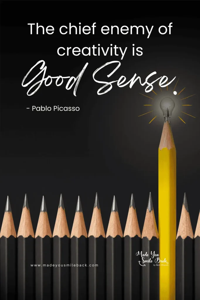 Sometimes the most creative ideas sound absolutely ridiculous at first. Picasso understood that “good sense” and conventional thinking can box us into boring, predictable outcomes. Give yourself permission to explore ideas that seem silly, impractical, or just plain weird.