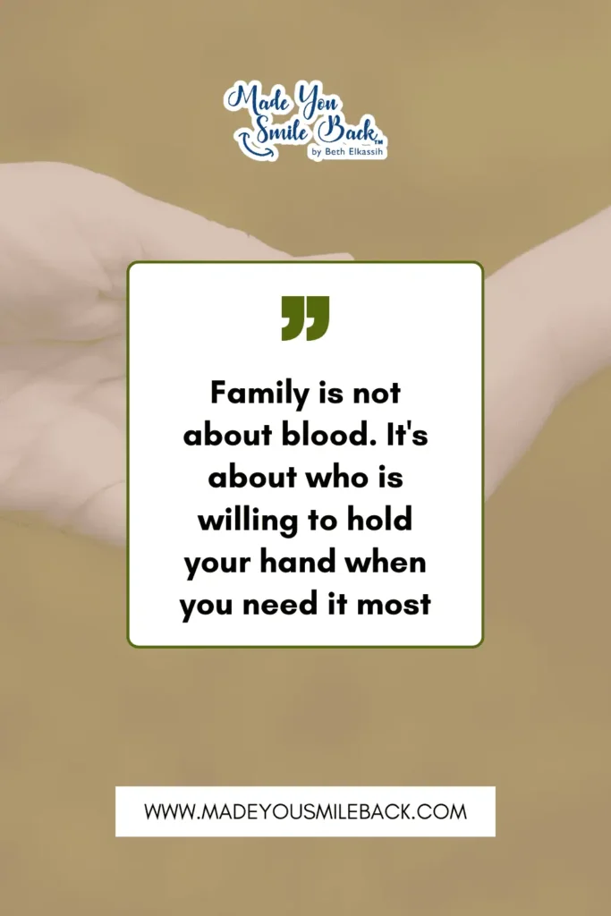This quote reminds us that family isn’t just about who you’re related to. Real family is about who shows up for you when times get tough.