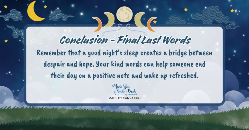 Many societies view nighttime parting words as a way to ward off negative energy and invite positive dreams. Your good night message can serve as a protective blessing for loved ones.