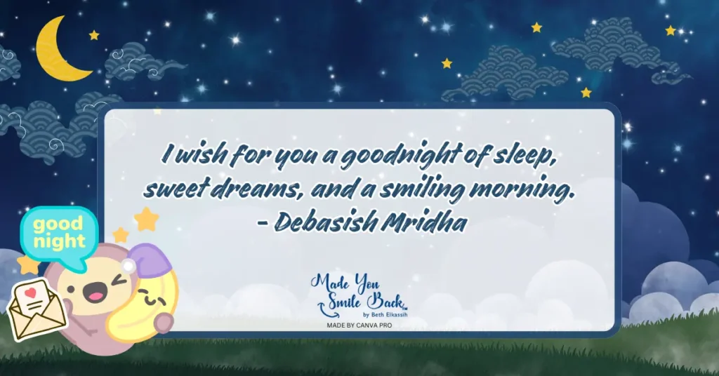 - “I wish for you a goodnight of sleep, sweet dreams, and a smiling morning.” —Debasish Mridha