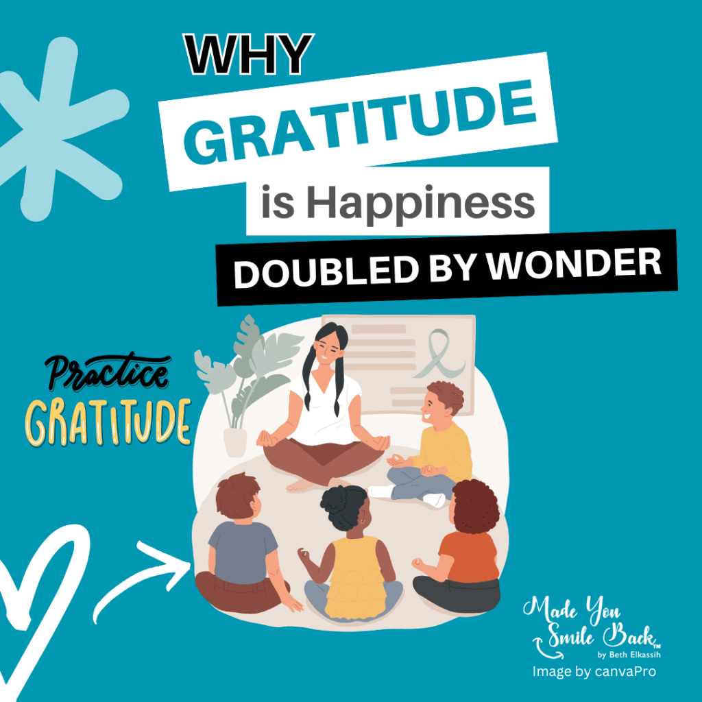 Gratitude doubles happiness through wonder. When you’re grateful, you feel happy. Add wonder, and that happiness grows even more.