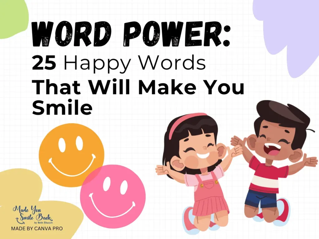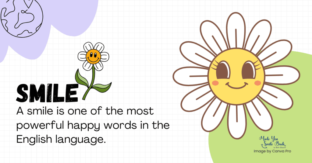 A smile is one of the most powerful happy words in the English language. When you smile, you show joy and spread positive feelings to others around you.