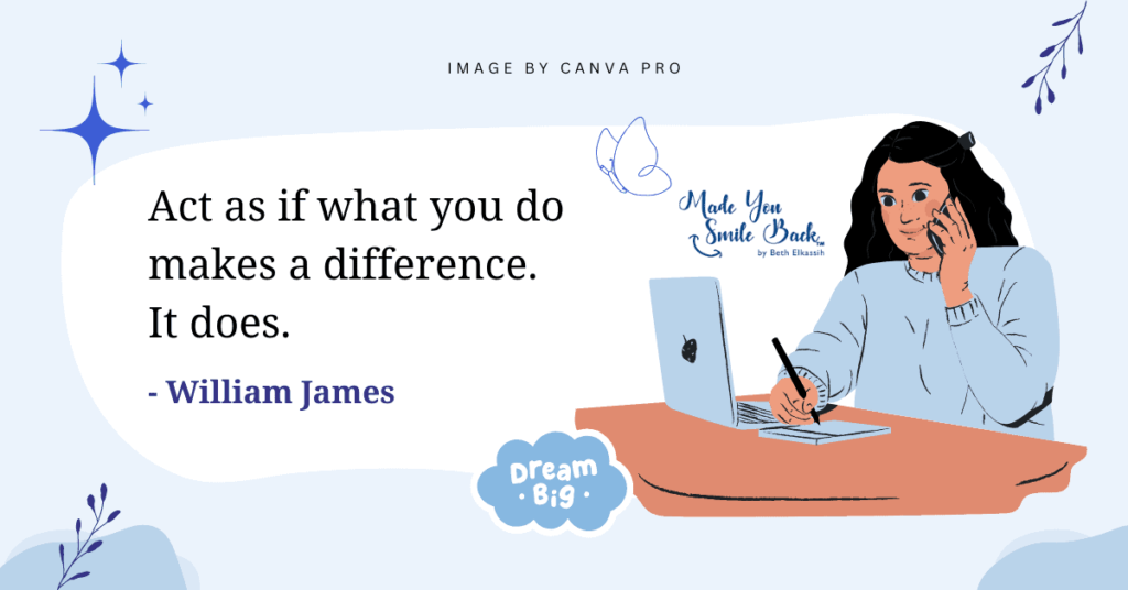 This quote by William James encourages you to believe in the power of your actions. It suggests that you should approach every task as if it will have a meaningful impact.