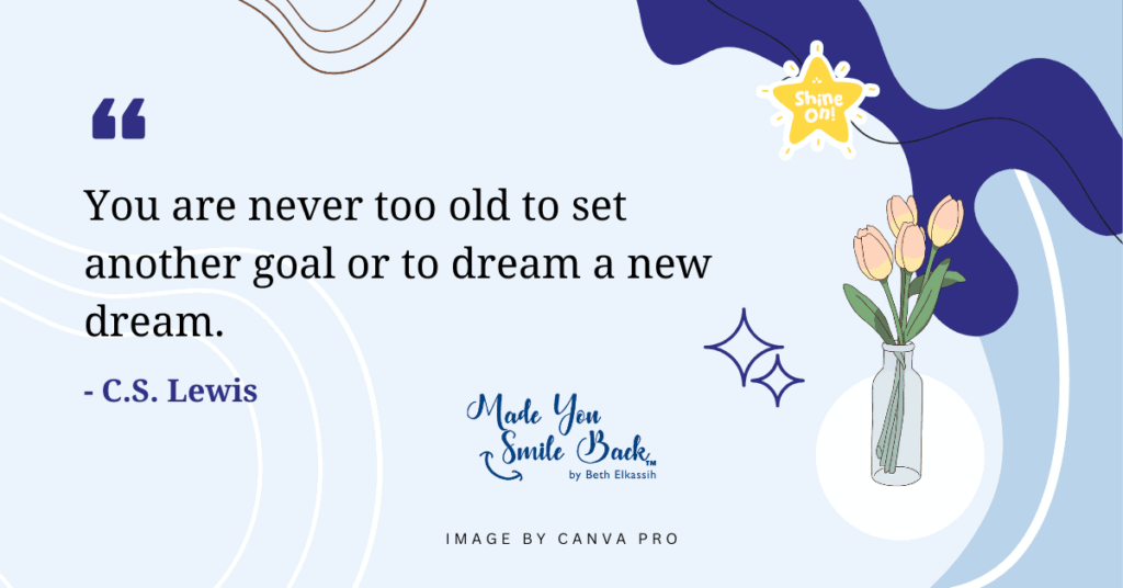 This quote from C.S. Lewis reminds you that age is just a number when it comes to pursuing your dreams. It encourages you to keep setting new goals and dreaming big, no matter how old you are.