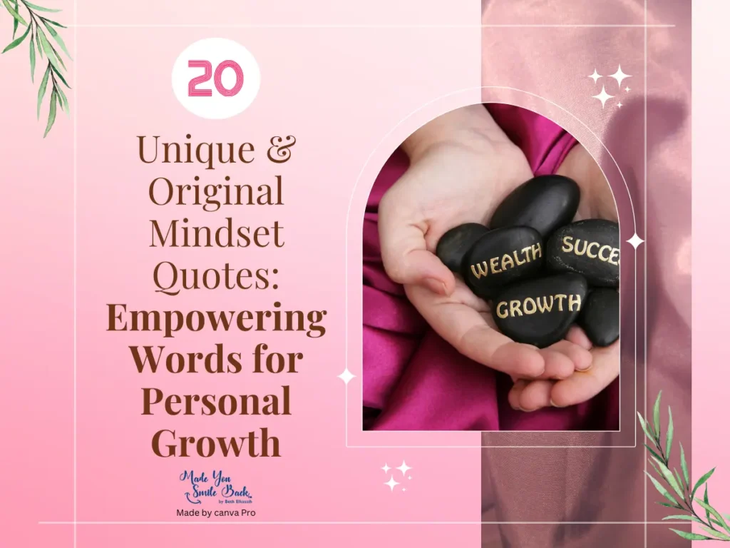 NOTE: Presented below are 20 mindset quotes all created by Beth Elkassih, the Creator of Made You Smile Back. Each are unique and original and are designed to make ‘one think’…