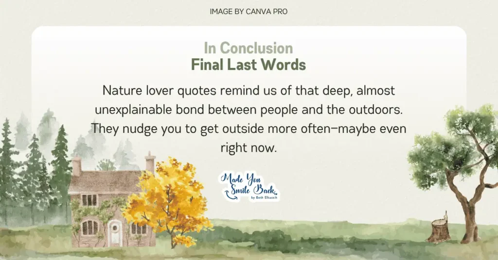 Nature lover quotes remind us of that deep, almost unexplainable bond between people and the outdoors. They nudge you to get outside more often—maybe even right now.
