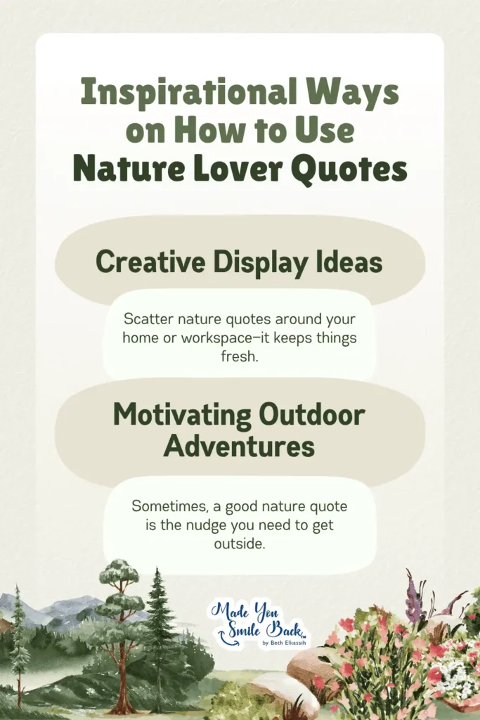 Quotes about nature can even rally friends to join you for walks, hikes, or camping. Organize a picnic or clean-up day and use quotes on invites or banners—it brings people together.
