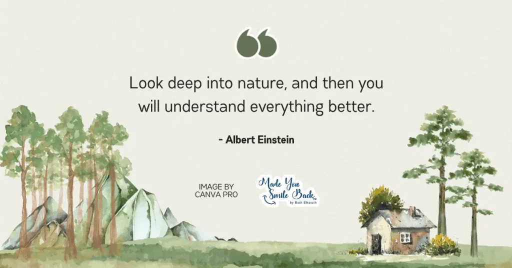 Einstein’s quote about looking deep into nature encourages you to be curious and thoughtful about what’s around you, as explained by Goodreads.