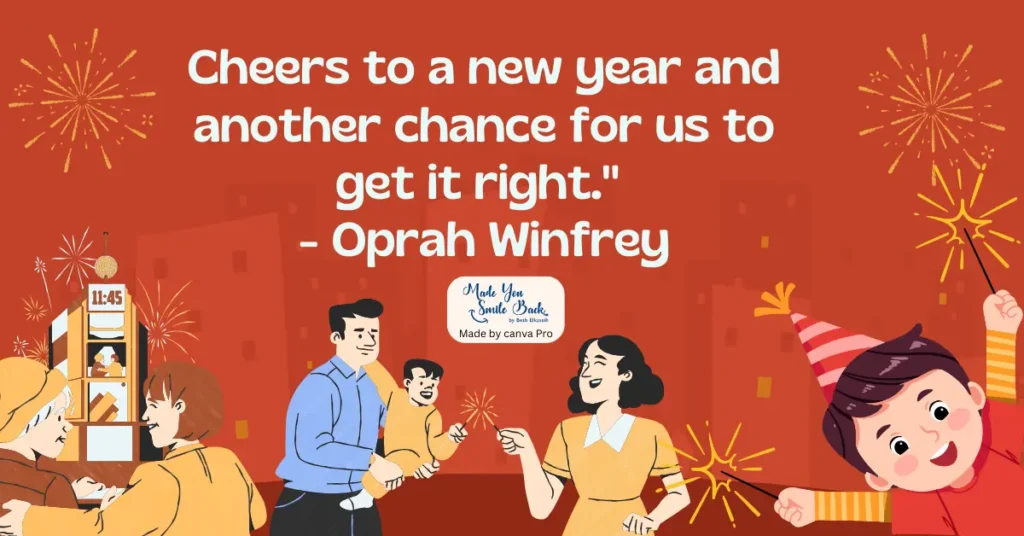 Oprah Winfrey said, “Cheers to a new year and another chance for us to get it right.” This quote encourages a fresh start and optimism.