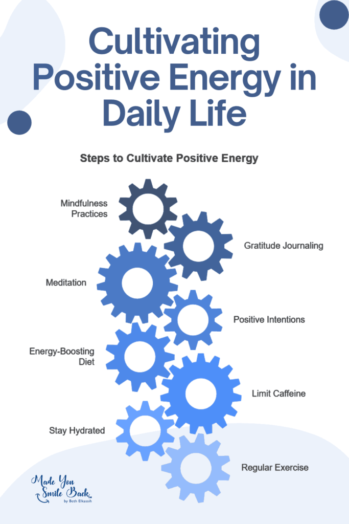 You can develop more positive energy through simple daily practices. Being kind to others, focusing on gratitude, and taking care of your physical needs all contribute to your energetic wellbeing.