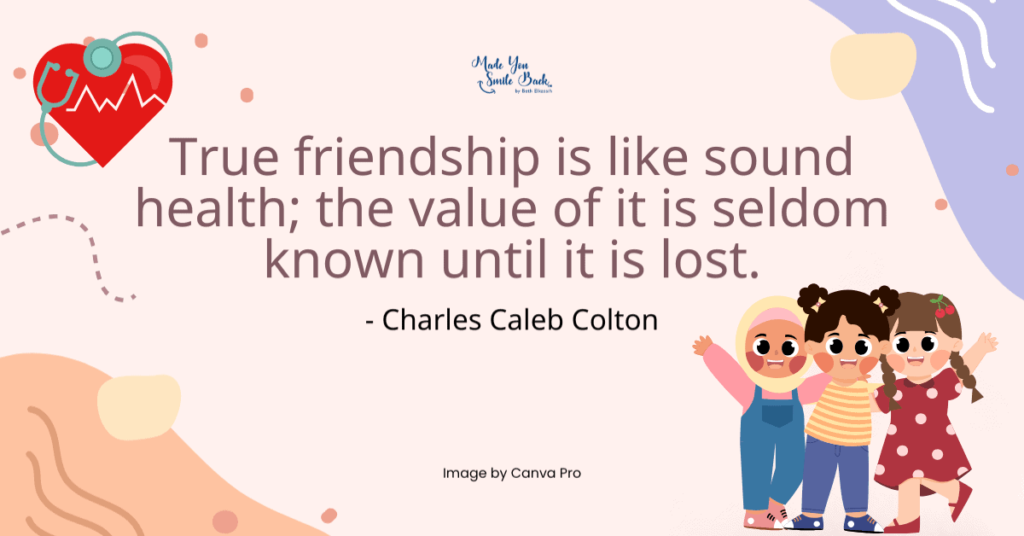 This quote about friendship comes from Charles Caleb Colton, an English writer. He compares true friendship to good health.