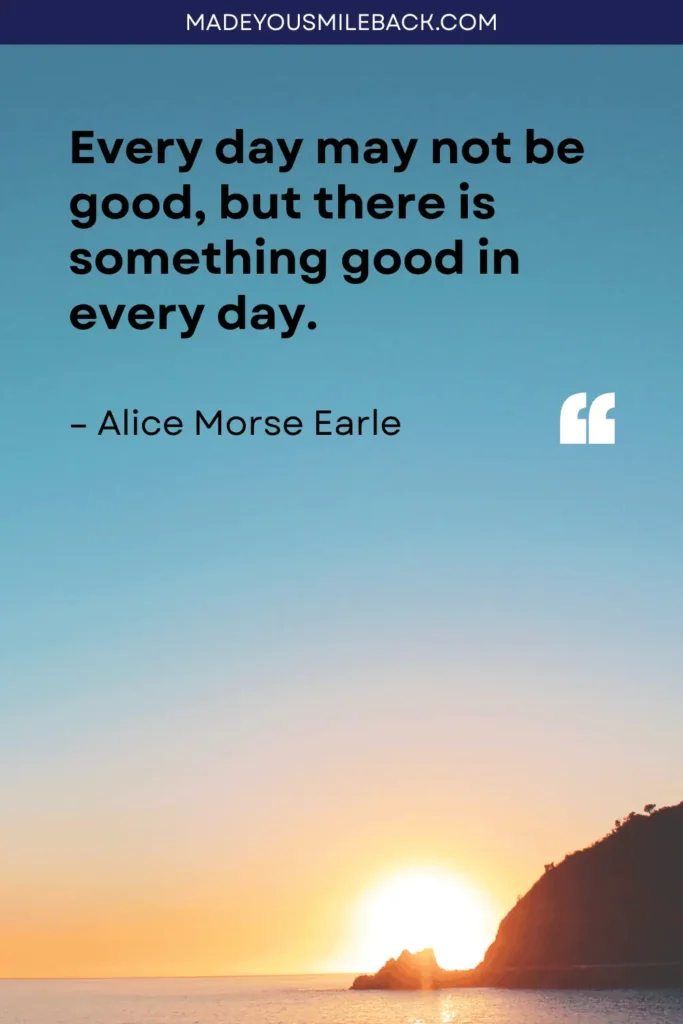 13) “Every day may not be good, but there is something good in every day.” – Alice Morse Earle
