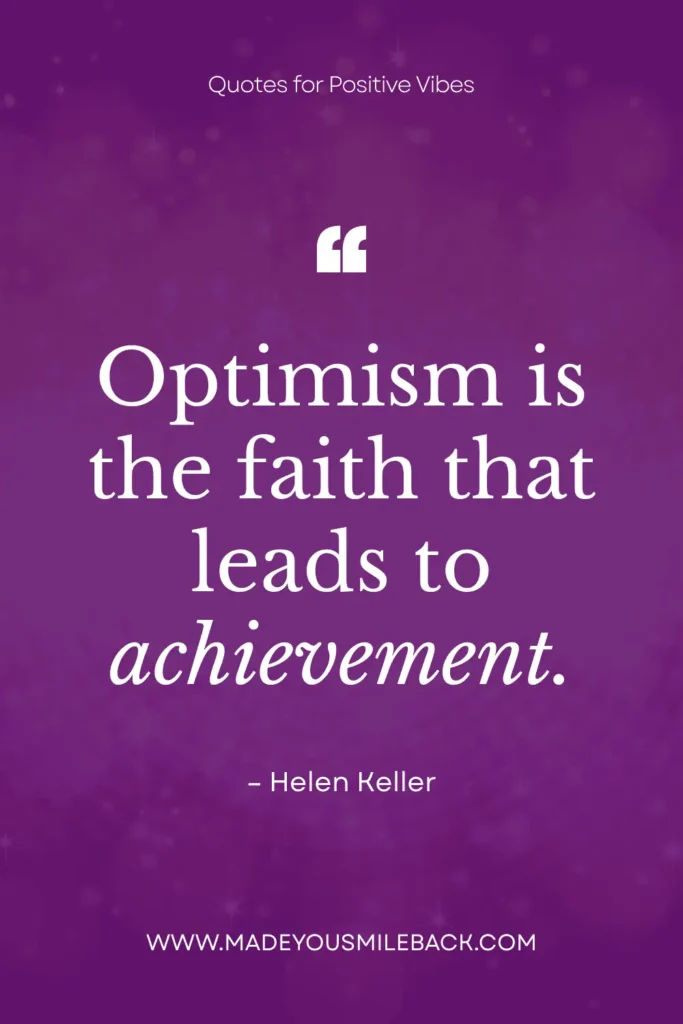 9) “Optimism is the faith that leads to achievement.” – Helen Keller