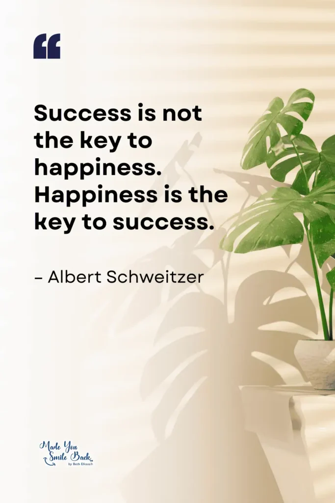 21) “Success is not the key to happiness. Happiness is the key to success.” – Albert Schweitzer