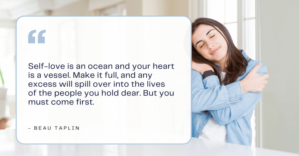 - “Self-love is an ocean and your heart is a vessel. Make it full, and any excess will spill over into the lives of the people you hold dear. But you must come first.” – Beau Taplin