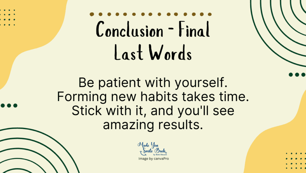 Be patient with yourself. Forming new habits takes time. Stick with it, and you’ll see amazing results.