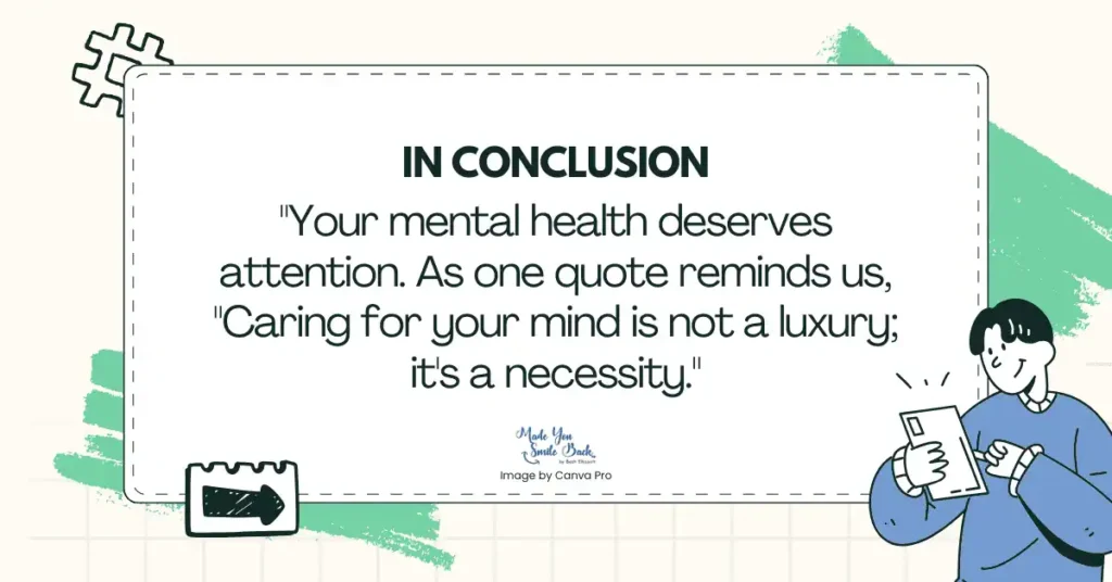 Your mental health deserves attention. As one quote reminds us, “Caring for your mind is not a luxury; it’s a necessity.”