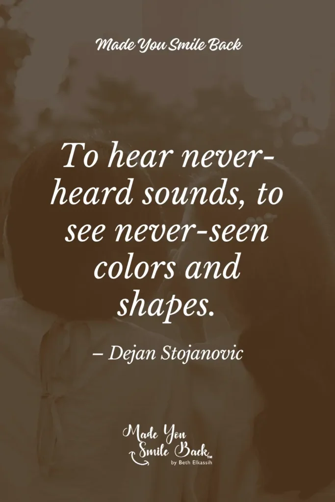 4) “To hear never-heard sounds, to see never-seen colors and shapes.” – Dejan Stojanovic