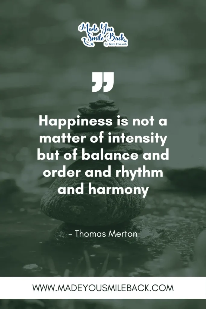 4) “Happiness is not a matter of intensity but of balance and order and rhythm and harmony.” – Thomas Merton